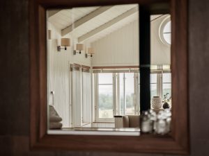 The suite is about 35 sqm and features a stunning bay window by the bed, offering views of the Skåne landscape as soon as you wake up. It is the only room with a bathtub, centrally placed alongside a shower. A separate toilet is provided. The suite also includes a sofa, desk, and a wardrobe. In 2020, we removed TVs from the rooms to allow your senses to fully embrace the natural beauty, culinary delights, and overall atmosphere while you are with us.